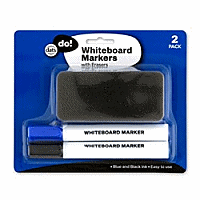 Marker Whiteboard Eraser 3pc Set Mixed Black Blue Ink