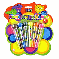 Stamp Roller Kids Animal w Felt Tip Colour Markers 6pk
