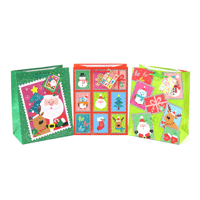 Gift Bag Xmas Medium w Glitter 128gsm 3 Asstd Cute 180x227x100mm
