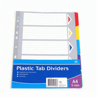 Tab Dividers 5 A4 Plastic (NO DC)