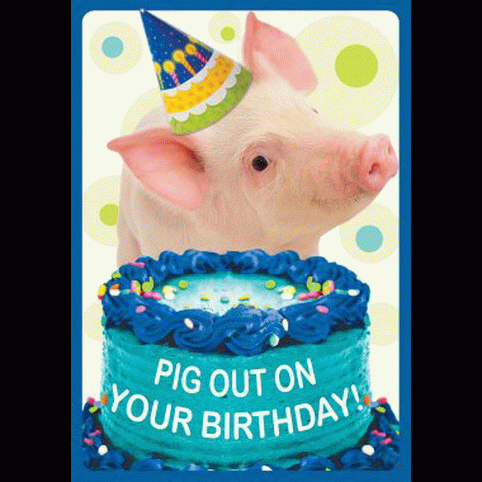 Rectangle -PIG OUT ON YOUR BIRTHDAY! party pig with cake