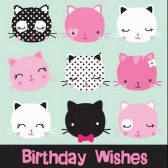Square -Birthday Wishes Patterned Cats