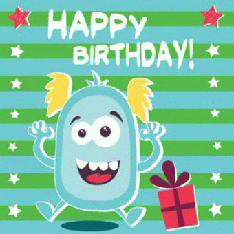 Square -HAPPY BIRTHDAY! Monster with present