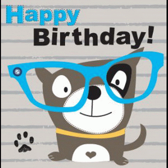 Square -Happy Birthday! dog wearing blue glasses