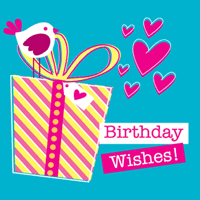 Square - Birthday Wishes! bird on present with hearts