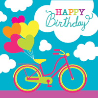 Square - HAPPY Birthday bicycle with heart balloons