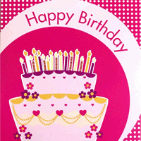 Square - Happy Birthday pink cake with candles
