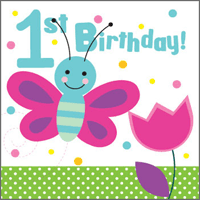 Square - 1st Birthday! butterfly with flower