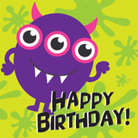 Square - HAPPY BIRTHDAY! purple monster