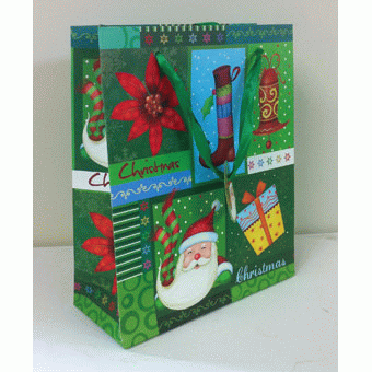 X Mas Gift Bag 28x20x10cm - Green